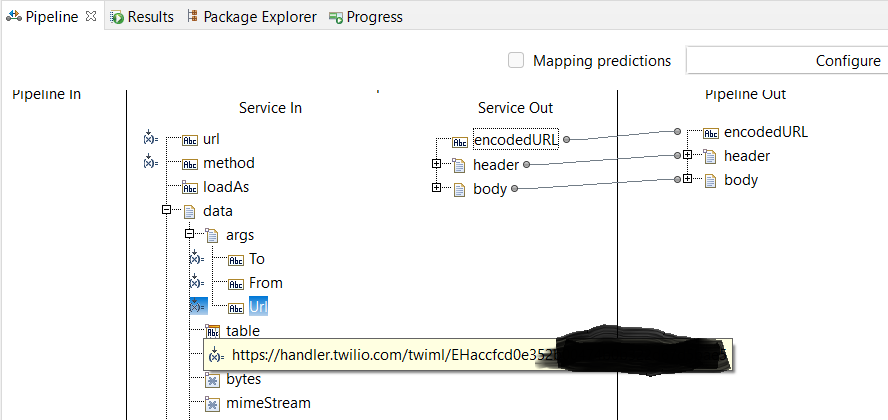 - In the flow service, invoke “pub.client:http” to call the Twilio API. This service handles the HTTP communication for us.
